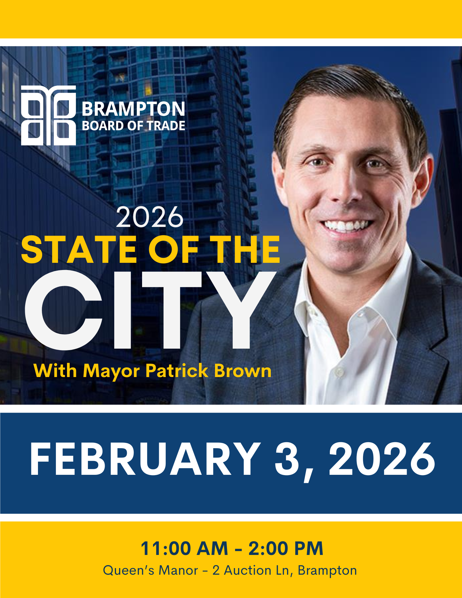 Hear directly from Mayor Patrick Brown as he delivers the State of the City Address, offering an insider’s perspective on Brampton’s growth trajectory, innovation strategy, and economic outlook for the year ahead. The event also features insights from the Brampton Economic Development Office and the presentation of the Mayor Patrick Brown’s Recognition of Business Excellence Award, celebrating a dynamic business that is driving prosperity and community impact.